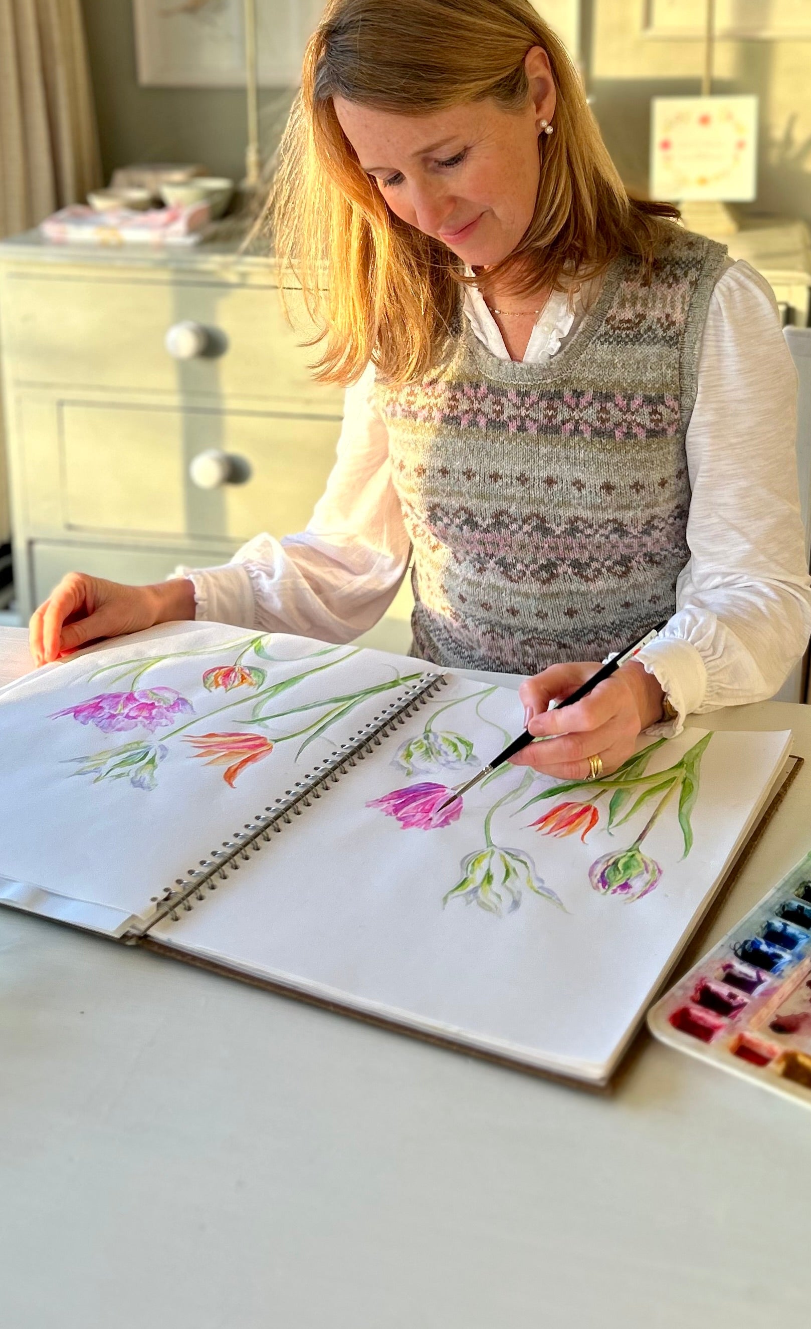 Having gained her degree in Illustration from Manchester University she moved south, working freelance as an illustrator and then in design and publishing. Her work has been published by Marks & Spencer, The World Wildlife Fund for nature, Heal's, John Lewis and Laura Ashley, amongst others. She has exhibited at The Country Living Fair, The House and Garden Festival, Spirit of Summer and RHS Chatsworth Flower show.